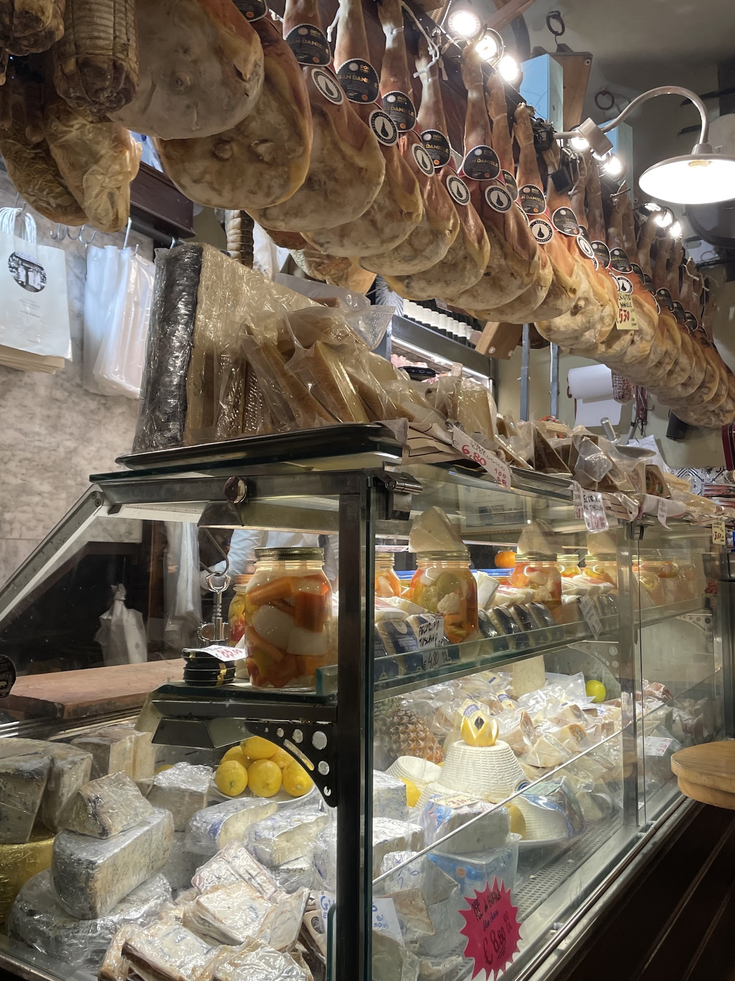 From the moment you walk in, you’re greeted by a glorious sight—prosciuttos dangling from the ceiling, wheels of Parmigiano-Reggiano stacked like edible gold, and shelves brimming with some of Italy’s finest wines. It’s a carnivore’s paradise, a cheese-lover’s dream, and quite frankly, a place you might struggle to leave.