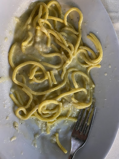 Went here on a whim and ended up really satisfied. The service was lovely, a kind gentleman who was very welcoming along with a gal who was very helpful..We started with artichoke and mozzarella which were both delicious! Along with a nice bottle of rosato. Next the pasta, spaghetti Bolognese was fantastic, HUGE portion. The pasta gricia was a bit thick and salty but still delicious. Finished with tiramisu also full of flavor and really large portion. We paid bit over 70 euro which is expensive for lunch but I also worth it as we had a really enjoyable lunch. Recommend coming at open or make reservations, the place filled up...