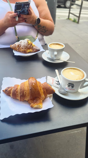 A lovely corner cafe with seating outside. This was our local cafe when staying in Rome and was always our first stop of the day. The friendly and helpful staff always welcomed us with a smile and didn't laugh when we tried to converse in Italian! Offering help and translation when required. Would highly recommend the chocolate croissant and a large cappuccino to start your day. Coffee was rich and smooth whilst the croissants were big, light and fluffy pastries, filled with sweet creamy fillings. Freshly made foccacia sandwiches were available and looked delicious however we never got the opportunity...