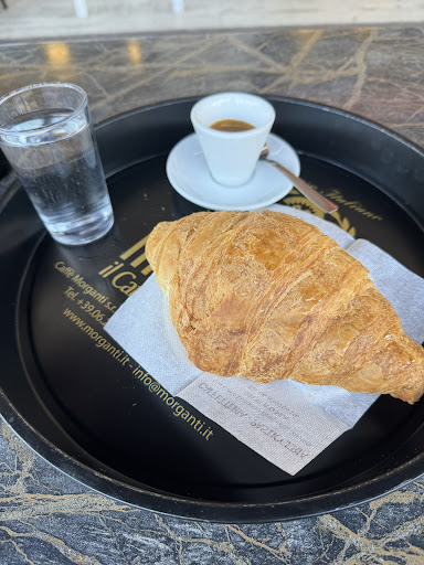 Ottima la pasticceria, i cornetti da bar molto areati, pasta buona, ben guarniti (quelli al pistacchio li guarniscono al momento e ci hanno messo anche una spolverata di zucchero a velo), ciambella fritta non dava di olio vecchio come mi è successo in altri bar quindi buona, latte macchiato con 1 dito di schiuma direi ben fatto e non annacquato come in altri bar che per fare la schiuma il latte si diluisce; attenzione al cliente buona (ho preso 2 latti macchiati di cui 1 più scuro e ci hanno accontentati). Peccato che i 2 shottini d'acqua glieli abbia dovuti chiedere e che chiesto il vassoio non abbiano proposto di accomodarmi e che mi avrebbero portato loro il vassoio al tavolo (avrei apprezzato molto), dato che avevano un cameriere per il servizio ai tavoli. Bagno sufficiente, da migliorare, cambierei l'asciugamano elettrico ancora vecchio modello a tasto rosso e lento con uno a superturbina, ci mette meno tempo ad asciugare e quindi liberi il bagno prima. Apprezzato l'attacca giacca interno al wc, io metterei il gel mani appena fuori la porta del bagno. Nel complesso uno dei migliori bar della zona anche paragonato ad alcuni nomi blasonati di cui è rimasto ahimè solo il nome (vedi...