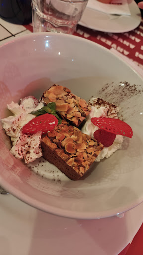Si mangia bene. Locale franchising ispirato alle taverne Romane con rivisitazione di alcune ricette. Il locale fa parte di una catena, questo è il motivo per cui alcuni piatti non possono essere modificati. Io volevo un piatto "speciale" senza salsa di pomodoro ma non l' ho potuto avere. La cucina ha modificato un piatto non speciale per darmi modo di mangiare comunque un piatto condito. L' impegno ha avuto i suoi frutti ed il piatto era buonissimo, l' alternativa sarebbe stata una pasta in bianco. Invece mi hanno cucinato i ravioli con cacio e pepe,lime e gamberi ed era spettacolare. Ho messo 3 stelle per l' ambiente perché purtroppo anche avendo avvertito che avevamo un neonato in carrozzina ci hanno messo in una posizione dove arrivava aria fredda, non so se dal condizionatore o dalla porta, siamo stati stretti per poter posizionare la carrozzina in modo che non desse fastidio al tavolo accanto alla nostra tavoalta, il locale non era pieno e non ho capito il motivo per cui ci hanno messo in una posizione tanto scomoda e di passaggio quando c'era tutto lo spazio per farci stare in tavolata, defilati e comodi. Vedere spazio intorno e stare sul pizzo della sedia è stato un po' triste ma il personale ha fatto quanto possibile per accontentare le nostre richieste, ad esempio cambiarci subito un bicchiere sbeccato, servire presto l' antipasto dato che c'erano dei bambini. Dal nostro tavolo era difficoltoso seguire la partita sullo schermo, ci sarebbe stato posto proprio in un punto adatto. Il locale ha un dehor con copertura mobile e funghi riscaldanti, potrebbe migliorare l'aspetto dentro è più bello ma fuori è molto funzionale. I cibi sono piaciuti a tutti, allego qualche foto. Consiglio i ravioli, li trovi la domenica sicuramente e negli altri giorni nella sezione "speciali". Consiglio di usare il menù digitale che è intuitivo e ci trovi molte specifiche sugli ingredienti, allergeni e fotografie dei piatti. Avverti il cuoco se non mangi il pepe o se ne vuoi poco perché ne usa in abbondanza come da immaginario collettivo sulle tradizioni romane. Se hai problemi di allergia parla con la ragazza alla cassa che ha un filo diretto con la cucina, si attiva subito per parlare con lo chef. Consiglio in oltre di provare le polpette di coda alla genovese e la cotoletta gigante. I dolci finalmente, i dolci hanno una misura umana, non sono a misura gourmet o assaggini sono a misura 'casa di nonna' con estetica gourmet e sono...