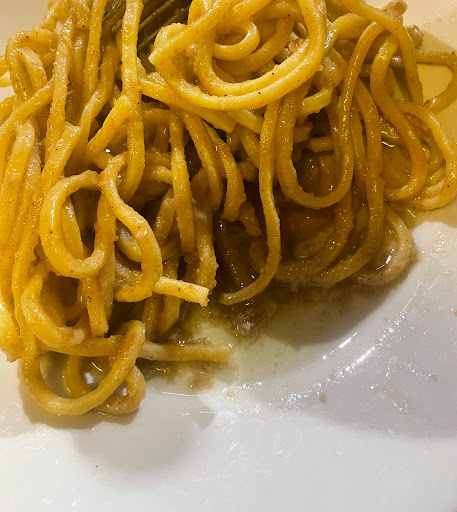 Read morePurtroppo la gestione è cambiata da 10 giorni, personale totalmente impreparato che non ha la minima idea di che cosa ci sia nei menù, appena arrivati il tavolo vicino a noi si è alzato e se ne è andato via, lo abbiamo seguito e chiesto, ci hanno detto che il conto era sbagliato verso l’alto di 12€ in più, abbiamo chiesto un antipasto e non ci hanno portato metà della roba ordinata, alla richiesta se avessero dei supplì e di come fossero invece che dirci il gusto ci risponde con la misura(tutto palesemente surgelato e di pessima qualità) ordiniamo allora 7 pizze e 3 paste di cui una cacio e pepe della quale lascio una foto, che chiedo come sia possibile chiamarla cacio e pepe, tutto è meno che una cacio e pepe, le pizze mai arrivate e quelle arrivate totalmente secche e troppo cotte, consiglio al titolare del posto di puntare su un altro settore perché ciliegina sulla torta neanche 10 minuti alcuni di noi sono stati male, almeno ha avuto la decenza di non controbattere alle nostre lamentele.