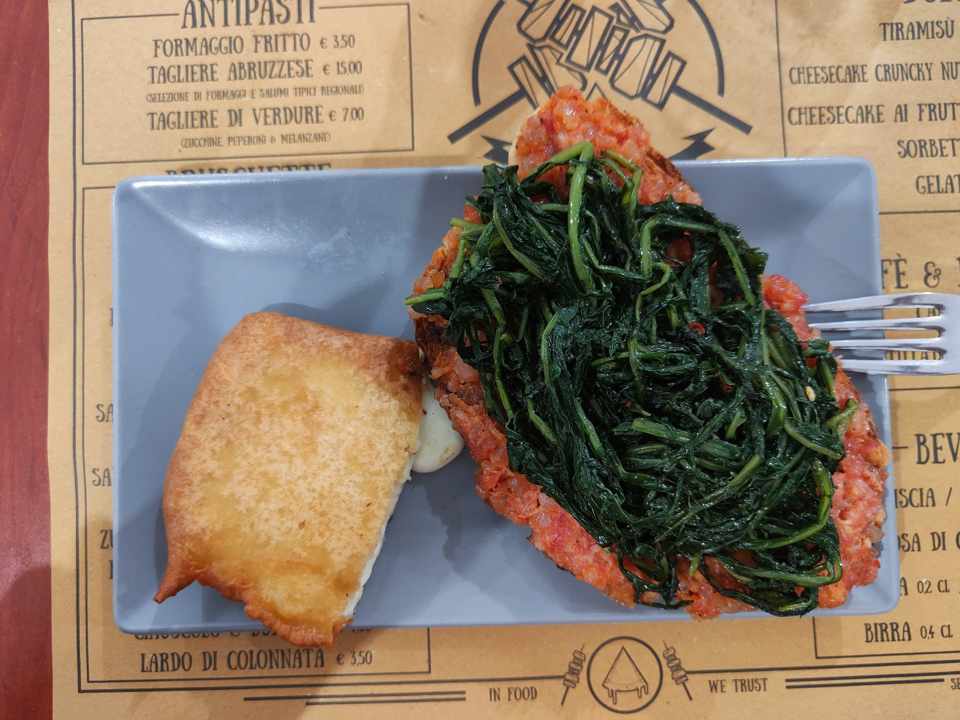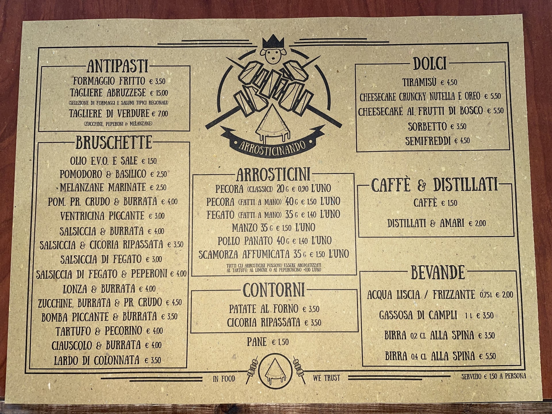 Da qualche mese tutto il menù, già caro, è stato aumentato del 20-40% (bruschette passate da 3,5€ a 5€, arrosticini da 1,5€ a 1,8€ ecc) come evidente dalle foto delle altre recensioni e dal menù presente sul loro sito che non è stato ancora aggiornato (grave).