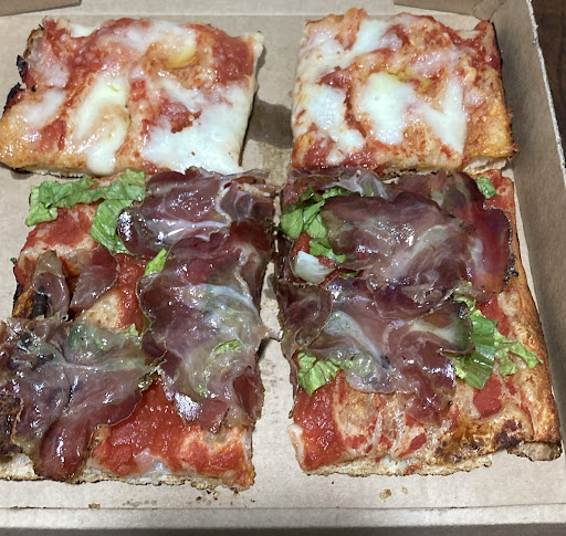 Nel recensire quest’attività sono combattuto; perché è innegabile che l’attenzione al dettaglio e la qualità della materia prima siano parole d’ordine, ma al contempo sento che si possa migliorare qualche dettaglio. Questa sera ho avuto modo di sperimentare due diversi tipi di pizza: margherita e base rossa con insalata e capocollo. Provare quest’ultima, è equivalso ad assaporare un pezzetto di paradiso: sapori semplici ma decisi, che armonicamente si sposano e si mescolano fino a far sentire una sorta di ebbrezza ad ogni morso; il tutto su di una base soffice e croccante al contempo, di una leggerezza e di un sapore disarmanti. Il prezzo del trancio, oltre i 5 euro, è risultato più che giustificato. Diversa invece l’esperienza con la margherita; che risultava buona sì, ma anonima. La mozzarella, ben presente, ma dal sapore non incisivo; la salsa (forse) non cotta a dovere; l’impasto - assolutamente di alto livello, sia chiaro - incapace di reggere il confronto con l’altra pizza. Assaggiare la margherita è stato un ritorno alla realtà; il costo (3 euro circa per il trancio), seppur elevato, sarebbe anche legittimo se questa margherita fosse in grado di trasmettere quella magia che le pizze più elaborare di questa bottega sono in grado di regalare. E parlo di bottega non a caso, chi ci lavora dentro è “artigiano della pizza”, conosce il suo lavoro, e sa farlo senza ombra di dubbio al meglio. Semplicemente, manca ancora quel tocco di perfezione in ogni singola teglia che sono sicuro arriverà nel tempo. Difatti, non vedo l’ora di gustare altre prelibatezze preparate qui, dai fritti alle altre pale. Infine, nota di merito per l’attenzione al design, alla tenuta del seppur piccolo locale, alla musica e alla cordialità verso i clienti. Spero di tornare presto, e in generale, non posso che...
