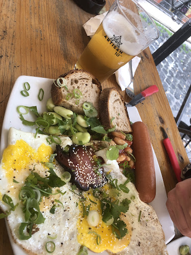 Read moreChe dire.. mi avvicino al bancone chiedendo se è possibile togliere il coriandolo dai primi piatti, mi viene detto che al momento (orario pranzo) era possibile fare solo il brunch/colazione e che perciò il coriandolo non c’era. Ordiniamo due colazioni all’inglese e due birre. Le birre molto buone, le colazioni erano piene di coriandolo. Allora, punto primo, non ho mai visto una colazione all’inglese con il coriandolo (fagioli, fave, wurstel, uova) e punto secondo ci era stato detto esplicitamente che le colazioni non lo avevano. Bene, uno schifo. Difficilmente mangiabile. Noi non abbiamo detto nulla perché il piatto sarebbe stato completamente da rifare e capiamo che può essere una perdita importante per il gestore ma noi abbiamo buttato 14 euro a testa. Pessima esperienza. Ci siamo sentiti presi in giro. Metà degli italiani odia il coriandolo. Cambia lavoro. In una delle foto quel mucchietto verde è la quantità di coriandolo che abbiamo tolto da solo uno dei piatti. Mamma mia. Non torneremo più. Inoltre quel wurstel era davvero un prodotto scadente del discount...