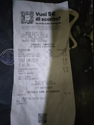 Read moreRagazzi vi prego non fermatevi in questo posto, l'addetto al rifornimento ci ha trattato malissimo, con ironia romana all'inizio non capivamo se scherzasse o stesse parlando sul serio, il fai da te non funzionava e abbiamo fatto 80 euro al servito, abbiamo chiesto al pompista se fosse possibile lavare il vetro e gonfiare le ruota ,visto che stavamo facendo un lungo viaggio, il tizio pelato un cafone numero 1 ci ha insultato,non siamo rimasti sconvolti, non capisco perché, ma non ci ha gonfiato neppure le gomme, una persona ridicola, servizio pessi.o, una brutta esperienza in un rifornimento...