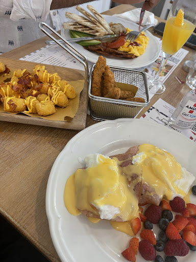 Read moreUna imbarazzante figuraccia per i gestori di questa bakery... Sul menù offrono una pietanza di cui non hanno un ingrediente principale, poco male, la ordino lo stesso perché ho pensato che le uova alla benedict senza pulled pork dovevano essere lo stesso buone. Il cameriere mi chiede se il pulled pork desidero sostituirlo con altra cosa, così vedendo che è un ingrediente usato per altri piatti chiedo una fettina di avocado. Tralasciando il cibo piuttosto mediocre, con patatine fritte fredde e pane del bagel straduro e stopposo, finisco il pasto e vado in cassa. Un uomo che lavora lì si avvicina alla titolare per accennare della mancanza dell'ingrediente (e immagino quindi una riduzione dell'importo del conto) Quest'ultima accenna a un "va bè" e batte il costo degli ordini senza ovviamente scontare nulla. Senza menzionare il fatto che di tutte queste spiacevoli cose ne ho fatta presente solo una al cameriere (ma solo perché mi è stata fatta la classica domanda "tutto bene?") Gli dico che le patatine sono un po' fredde e mi risponde che fa presente in cucina. Ora, cosa me ne faccio di questo fare presente in cucina se il piatto non lo riprendi e mi porti patatine calde?? Quale clima di terrorismo c'è in un ristorante se al cameriere non viene data la possibilità di assicurarsi che veramente vada tutto bene? Senza parlare della figuraccia di cui prima. Io non ho chiesto sconti ma il fatto che non mi sia stato offerto la rende una cosa davvero spiacevole....