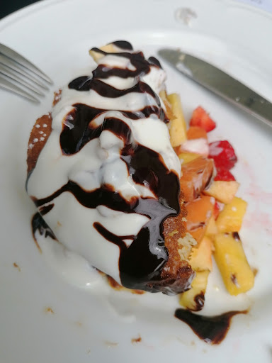 Ho fatto scendere questo locale Sopratutto per la mediocrità del pancakes Di solito quando lo prendo nei pomeriggi di gran voglia delle loro leccornie Credetemi sono molto più grandi e gustosi Invece quest'oggi mi hanno molto deluso In primis come vi ripeto melo aspettavo almeno grosso Invece basso e frutta scadente Yogurt che non sapeva di nulla E cioccolata che sapeva un po quasi di bruciato Aime se non avessi fatto io una finta decorazione alla buona Mi pareva chissà che mi stessi a mangiare E visto che un altro tavolo aveva ordinato i pacakes salati Stavolta la lezionee bastata E se ci dovessi ricapitare Mi prenderò di certo quello