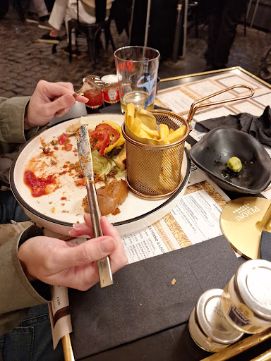 Read moreIt's not often I review a place whilst still at the table. That poor was it I'm sorry but I have to. So... Ordered 4 burgers and chips - yes we are in rome but the family had a craving for junk food Wife sent hers back, honestly a good vet could have brought it back to life. To say it was still mooring. Other family members was the same but she didn't want to make a fuss. Two were cooked slightly pink but perfectly fin. Presentation. Was OK, chips came in a small mettle basket. All of it on an oversize plate making it feel even smaller. It wasn't but the look and style needed some work. Customer service. The meal was replaced but the comment it's cold and not cooked was greater with no it's just pink. Honestly the fact a new one came with no issues says it all. Chief must have been mortified. Trouble is that took 10mins for fresh food so the rest had finished before she got started :( And the chips were cold when it came back, think they reserved them... she didn't complain again just paid and left Location is great service was good but not polished for a high tourist area.