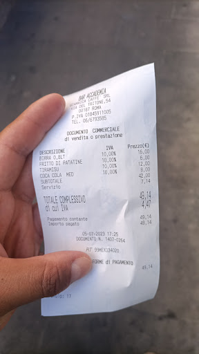 Estuve por Roma y se me ocurrió parar a descansar un poco para tomar una cerveza y comer algo ,fui con mi esposa e hija solo se pidió una cerveza,una coca cola una patatas fritas y un tiramisú que en el mostrador valía 5 euros , ya tuve sospecha cuando en la mesa de al frente mio había una familia de españoles eran unas 5 personas y cuando le traen la cuenta se sorprendieron y le estaban reclamando al camarero y el camarero le habla despacio casi murmuraba bueno pagaron con 3 tarjetas se repartieron la cuenta pero salieron muy molestos su mesa no estaba llena había bebidas y poco más era una cuenta de casi 400 euros ojala ellos también pongan su reseña ,bueno cuando yo vi esto ya no pedí nada más íbamos a cenar hay pero pedí la cuenta y mi sorpresa fue que me salió casi 50 euros por las pocas cosas que pedi fui al mostrador y le dije como esque en el mostrador tiene un precio y ellos cobran otro y su respuesta fue que ese precio es para llevar y lo demás como en la carta no tenía el precio no les puede reclamar,subo el recibo para que lo puedan ver , esos días que estuve en Roma cene y comí en otros restaurantes y no te cobraban de más , son...