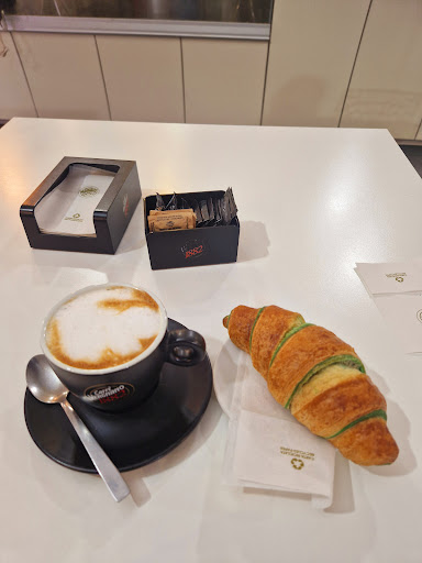Read moreBar spazioso e luminoso, con tavolini e sedie, interni ed esterni. Personale gentile e simpatico. Cappuccino senza lattosio e cornetto con crema al pistacchio 💚, buoni. Vario tipo di pasticceria e torte, tutto artigianale. Vendita di Grappa particolare e altro. Si possono fare anche cariche telefoniche, pagare bollette con codice a barre, gratta e vinci, lotteria di capodanno...