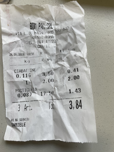 Non sono una cliente abituale, ci sono stata 3/4 volte, e la mia impressione è che se si è clienti sono simpaticissimi come ho letto in altre recensioni se non lo si è manca un po' di attenzione! Se un ciente entra e saluta sarebbe bello ricevere risposta e se non ti filano perchè stanno parlando tra di loro è ancora più fastidioso. Prodotti buoni ma sono abituata ad altri prezzi. Una crostatina 2 € è davvero tanto, considerando che al bar vicino costa 1,60 € ed è di pasticceria no all'ingrosso e più grande. Non so se non la fanno proprio o capita sempre a me che non abbiamo le rosette ma hanno solo ciabattine e va bene. 2 Ciambelline al vino e intendo due di numero 1,43 € mi pare un po' troppo. Al momento non mi convince molto ma proerò a tornare per provare a fugare...