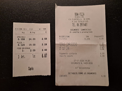 Read moreOne of the best pizzas I had here in Rome. And the prices were very reasonable. The prices of the pizzas are per 100g. We got potatoes and ham pizza and margherita pizza for €5. It was very tasty and filled my hungry belly. The store is located just outside of the wall of inner Rome, it made the prices more affordable than had it been on the inside. I didn't care for the atmosphere of the place, it was a cookie cutter takeout joint. The food, on the other hand, was great! The young man who prepared the pizzas was nice, friendly enough, and the pizzas tasted awesome....