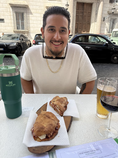 Read moreWe were two friends ordering separately. It took a long time, and we weren't allowed to wait inside. They had tables and chairs in a stack outside, but they told us they didn't have anywhere for us to sit, so we had to order takeaway. There were two men before us who were lucky enough that they pulled out a table in front of us. When they finally came out with our sandwiches, the men had left, and we sat at that table. They had gotten both of our orders wrong, even though we ordered separately , said the number AND the name of the sandwich +pointed at the menu. When we told the waiter this, he didn't care but told us we had to pay 4 euros for sitting at the table for 3 minutes. A type of service charge for sitting at a table. No apologies for getting the orders wrong or anything. We had to take the sandwich they had made. Worst service we had in all of Rome this...