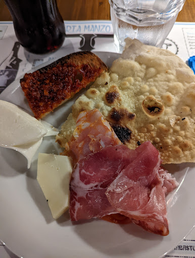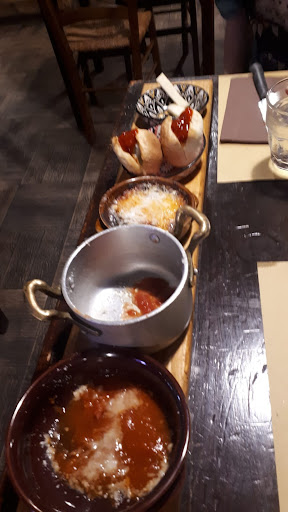 La mia esperienza pessima sotto ogni punto di vista. Ci sediamo al tavolo e la cameriera ci riferisce che la brace è spenta e che possiamo ordinare la pizza o i primi. Ordiniamo un antipasto mucca pazza ×2 persone e un primo. Durante l'attesa dei piatti sentiamo il titolare che parlava con le ragazze del primo che avevamo ordinato e pochi minuti dopo è arrivato al nostro tavolo dicendoci che stavano per chiudere, che la brace era spenta. Arriva l'antipasto...beh...immangiabile. Pollo fritto cotto sicuramente qualche ora prima e scaldato al microonde...duro come il legno, e nonostante ciò per ben 3 volte mi hanno chiesto: allora com'è buono? Letteralmente una presa in giro per farci andare via il prima possibile...e in tutto ciò mi sentivo osservata proprio perché non ho toccato nulla a parte una polpetta e la focaccia bianca, che almeno questo era buono. Tempo di servizio e fine pasto 30 minuti. E il titolare quando siamo andati a pagare, già avete finito? (Beh, calcolando che ci ha fatto pesare che stesse per chiudere, e che ci siamo sentiti presi in giro dall'inizio alla fine, ce ne siamo andati). Non credo...