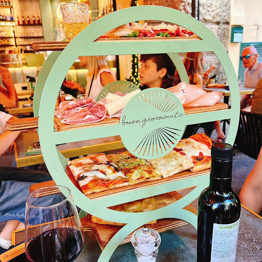 Read moreQuesta sera abbiamo ordinato tre tipi di accompagnamento per i nostri aperitivi. Vengono serviti su delle piramidi di taglieri, messi uno sopra l'altro. Essendo sette amici la cameriera ci ha consigliato di prenderne almeno uno per tre persone in modo da mangiare abbastanza per ognuno (20 euro a piramide di taglieri). Ordinato il tutto ci aspettavamo per l'appunto tre piramidi e invece ne è arrivata solo una dicendo che in cucina hanno messo la quantità di tre in una piramide sola...allora...primo: se ordino tre piramidi da 20 euro cadauna ne devono arrivare tre, secondo: me lo dici subito che ne arriverà una con la quantità di cibo superiore e poi io decido cosa fare, terzo: ovviamente non avrei mai accettato se lo avessi saputo perché dentro una piramide non c'era assolutamente la quantità di salumi e formaggi di tre piramidi, ma era praticamente identica a quella del tavolo affianco che ne aveva ordinata solamente una porzione. In parole povere abbiamo pagato tre taglieri per riceverne uno e sentendoci dire che il cibo era di più della singola porzione. L'ho fatto notare, i camerieri sono sbiancati e non hanno avuto il coraggio di negarlo. CONSIGLIO PREZIOSO: per tutti gli sventurati clienti, se ordinate uno, due, tre o quattro taglieri pretendete che siano numericamente e fisicamente quelli e non fatevi dire che hanno messo tutto dentro un tagliere solo (bugia, bugia,...