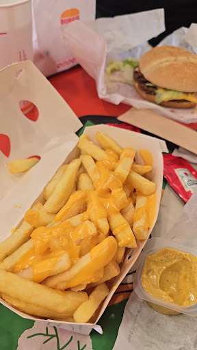 A plus this place had very cold air-conditioning and place was really clean.We are vegitarian and wanted to give this a try since we dont have in united states. We had fried nachos were good, plant based nuggets were good, dont forget to try the mango curry dipping sauce, cheese fries were ok. Plant based burgers were good as well. You get no ice in your fountian drinks which was expected and they leave about 2 inches from top and no refills. and you have to pay 50 cents a packet for ketchup and all sauces. Over all good experience I mean its fast food what...
