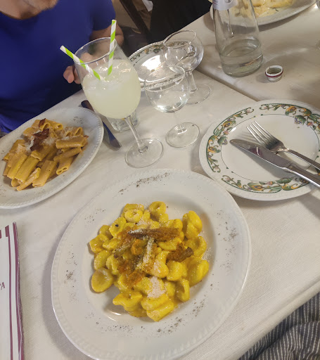 We had just arrived where we were staying nearby and very hungry. We asked Google where the nearest restsurant was and thankfully we were given this one. We were greeted very warmly and shown to a nice table. We ordered spaghetti carbonara and one of the calzones, the house red and a bottle of water. Our table was near the kitchen and we kept seeing beautiful dishes coming out that smelled even better than they looked. Our dinner came out in short order and WOW! Both dishes were absolutely scrumptious!! We ordered home made potato chips to take home as a snack for the kids who were about to arrive and they were fabulous as well. I cannot say enough good about this place or its people! Not a lot of English spoken, but more than enough for one to enjoy a fabulous meal served by wonderful people at a great price in nice surroundings. We will be eating here some more before we return to the Seattle area.