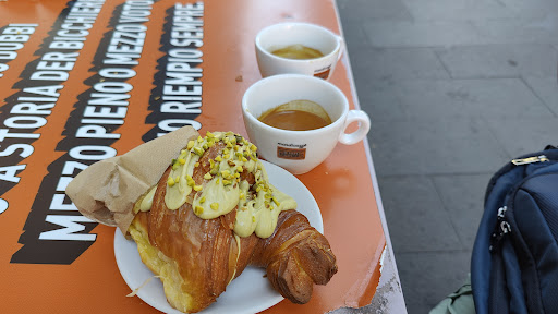 Read moreLoved the pistachio croissant, 1.50 €! Even the plain one is lovely, just 1 €. Lots of locals, and I think we were the only tourist. It’s so good, we came for 3 consecutive days for breakfast. Stand at the bar and eat with the locals. We got cappuccino too, 1.10 €. And caffe lattes, 1.20 €. Food are deliciously great and cheap and worth your money or walk if you have to! (All the more you got to take away some...