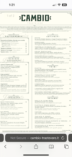 Read moreIf you want to taste great food, have a nice dinner in a beautiful place, drinking great wine, this is the place for you!! This restaurant offers a unique experience, the staff is friendly, welcoming and professional, the food is TOP, and the wine selection is extensive and excellent. As a frequenter of Roman restaurants I ABSOLUTELY suggest you stop here. I went there last night with 4 friends for the first time and it will be one of my must stops in the future. I suggest trying their "Amatriciana." Definitely one of the best I've ever had. Prices are completely reasonable. Just a little comment on some reviews I read about this restaurant. Someone says "small portions", I get it, you may not like the food, you may not like the service - everything is personal - but the portions are not! How many ounces of pasta are you going to eat? Our plates were big! Not normal... BIG! On another I read "untrained staff". Even this is not debatable! The staff is MORE THAN PREPARED, maybe you should ask to understand. Please, if you are reviewing someone else's work, at least try to be HONEST! For you it is venting, for them it is work and for other customers this is a disservice. If you just need to vent,...