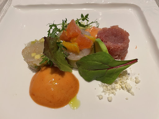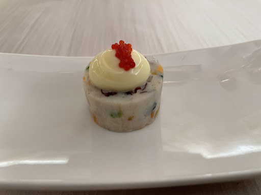 Read moreIt was a very nice delicacy restaurant. Not the typical Italian. Small designer portions. Very expensive but creative. Do not go hungry. It’s more for the experience. The owner stands over the servers, shoulder the entire time to make sure that everything is properly explained. I know that it has to be uncomfortable for them because it’s uncomfortable for yourself. My husband’s comment when we left was, I would hate to have to work here. In the same sentence, the owner does run an in that same sentence, the owner does run a tight shift And wants everything perfect . He’s also very customer friendly, and comes to the table quite a bit.And he’s very attentive to the tables himself. It’s almost slightly intimidating. There are cameras on you and you’re really not going for the ambience.. you were in a very small painted room with may be 15 tables if that . Almost like a closet, last year New Year’s Eve, we went to a similar dinner in Paris, but it was at a very famous restaurant. The ambience was outstanding. For the restaurant and the slightly stuffy uncomfortable feeling I don’t feel like the price is adequate. I understand that everything is fresh, but in most cases, a lot of the restaurants hear everything is fresh and creative. This is a designer dinner with a very creative chef. Very beautiful dishes very small proportions. And a very long time. Great for a two hour...