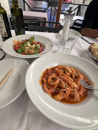 We arrived at this restaurant for a late lunch, at 2:30pm the place was packed. We were told only outside tables were available so we sat down at one of the tables that lined the small street opposite side from the restaurant, separated by an iron barrier. After we sat down, we were greeted by the waiter and he proceeded to throw down some cream colored tablecloths onto the table (though white tablecloths were already present) and he waived the hand motion for us to spread them out over the two small tables that we occupied. It was myself and my two young teenagers, so my older son began to help spreading out the linen. Then the waiter came back and stood on the street side facing our table and threw down 3 sets of silverware - literally “threw them down” as one of the forks bounced and landed up nearly up side down. While we waited for the food, the bread that the waiter specifically asked if we wanted (both my kids said no, and I said yes), never came. When our 3 dishes and a salad came, I noticed we did not have any napkins. I politely got the waiter’s attention and asked for napkins. He brought us 3 smaller plates. Though not what I asked for and it’s my fault for not speaking Italian, I said thank you as we needed them to share the salad anyway. I then waited for the waiter to come back around the next time and waived at him once again and asked for napkins. He acted confused and so I walked two steps over to the table next to us that was recently emptied and pointed at the napkins. The waiter said - ok, how many do you need? One, two? I replied “there are 3 of us so we would need 3”. Then, 5 minutes into eating our meal, the waiter came by and took away the oil, balsamic vinegar and salt from our table, without asking if we were done with them. I tried not taking the waiter’s attitude personally but at every exchange, his attitude was rude and strange … in a way borderline toying with us. I can’t help but notice the table of two who sat down within 5 minutes after we did, they had the same waiter, but did not seem to experience the same treatment as we did. The dishes we had were very good - the only redeeming point about this restaurant. We are a non white non Italian, English speaking family. I can’t say if this contributed to the waiter’s terrible attitude towards us … there are so many good restaurants around I would NOT go back again and be treated as we weren’t good enough to be there....