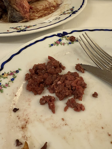 Read moreThis place was the most disappointing part of our trip to Rome. We booked a table for 8pm, went on time and the restaurant was still empty as it just opened. We did not order a massive amount of food as we had some pizza earlier that day and aperitivo with little snacks, still to celebrate a bday we ordered 1kg of grilled meat with a bone, and some sides. One person took pasta as well & another one a different kind of meat/ steak. The food was tasty (good but not extraordinary..), however the service was very poor. The waiter had a bit of an attitude, wasn't too friendly. The food was arriving in a weird order, sides 1st the big grilled meant much later. We shared all that and the person who ordered a steak still did not get his meal. It took more than 30mins to get this, another table who came to the restaurant after us had already served their food, but we did not. Finally it arrived but the waiter did not even say sorry he forgot. So one of us had to watch the others eating, and later was just eating on his own.. Trying to get the attention of the waiter or call him was also not easy, he just didn't look at us or didn't care. The restaurant was at that point still pretty empty. In the end we paid and he added that tips are acceptable only by cash... just a miserable service tbh and broke the whole experience to us. I don't...