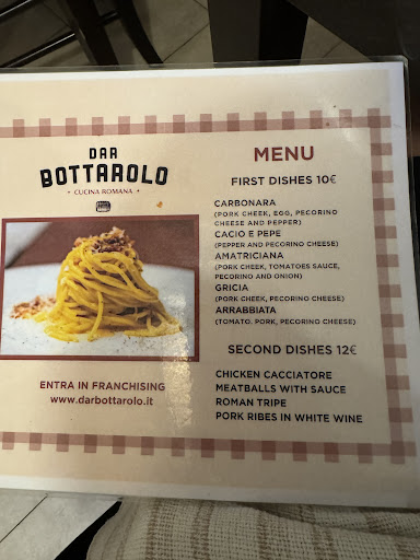 I visited Dar Bottarolo with my gf for their "all you can eat pasta" menu. The restaurant is located in the charming neighborhood of Trastevere, and the atmosphere was cozy and relaxed. The waiters were friendly and attentive, and they offered us some appetizers before the pasta.