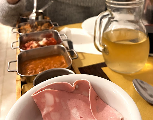 I visited Dar Bottarolo with my gf for their "all you can eat pasta" menu. The restaurant is located in the charming neighborhood of Trastevere, and the atmosphere was cozy and relaxed. The waiters were friendly and attentive, and they offered us some appetizers before the pasta.