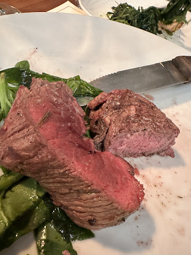 Read moreEsperienza veramente fantastica. Ho conosciuto questo locale tramite social del quale mi aveva colpito l’accuratezza dell’impiattamento ed è stato un successo. Possibilità di stare fuori e dentro, sala interna piccolina ma non rumorosa, accogliente con sottofondo musicale. Per ciò che concerne i piatti nulla da dire, bella presentazione e soprattutto la qualità della carne veramente eccezionale, tartare e condimento perfettamente bilanciato per un’esperienza di gusto deliziosa. L’entrecôte, come io l’avevo chiesta, poco cotta tendente al sangue, era perfettamente frollata, si scioglieva in bocca e non ha perso sangue. Stesso discorso per il filetto, nonostante la cottura, questa volta media, ci ha deliziati. Per concludere in bellezza non poteva mancare il dolce, frolla con crema di pistacchio e lamponi, anche qui una gioia non solo per il palato ma anche per gli occhi. Ringrazio la cameriera, sempre sorridente ed estremamente disponibile come il proprietario. Bellissima serata, ci...