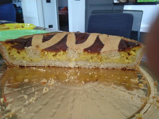 —— In risposta al proprietario, ovviamente confermo di averla presa in Via Ozanam, stamattina in data 16/07/2025, è passato il mio compagno a ritirarla. Allego anche la foto per far vedere che, a parer mio, la frolla e la crema (soprattutto) non sono sufficienti per una crostata. È sembrato di mangiare una macedonia, piuttosto. Per quanto riguarda la frutta, non tutta, ma nello specifico le more, i mirtilli e i lamponi, si sentiva acqua all’interno, proprio come quelli scongelati. Poi non so. Io confermo, a malincuore, la...
