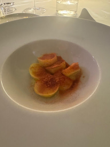 Read moreUNA TRAPPOLA GASTROFIGHETTA La scelta di cenare in questo ristorante impone una preparazione a me, temo, mancata: occorre sapere in anticipo che qui praticamente non si può scegliere. Cosa? Quanto mangiare e, per certi versi, cosa mangiare. Ti accomodi al tavolo in un ambiente sobrio ma non elegante (e semivuoto) e ti viene detto, dallo chef che come prima cosa dichiara di avere ricevuto un premio come miglior ristorante nazionale (tanto di cappello), che c’è solo il menù degustazione. All’inizio ti viene un coccolone perché ti è presentato il menu da 100 euro da, non saprei, dieci portate? Però con esperienza mistica perché con vari effetti sorpresa nei cibi e nella presentazione (anche con musica in cuffia) . Agli occhi allibiti di due amiche uscite giusto per mangiar qualcosa (e anche un po’ a regime, vista la prova costume imminente) , si presentano, non senza una lieve nota di disappunto, due ulteriori menu degustazione da 60 (due portate) e 80 (tre portate) euro. Scelto, nonostante le “resistenze” del nostro ospite, il menu da due portate, arriva prima una entrèe e poi un’altra: gradevoli idee di cibo. Dunque, il nostro primo piatto (un antipasto) che per le dimensioni evanescenti poteva paragonarsi alle prime due (io ho scelto una rosellina di rapa rossa su un lett(in)o di crema di formaggio) e, infine, il baccalà con topinambur. Un calice di vino. Conto:160 euro in due (nn ho controllato ma temo che sia stato contabilizzato a parte anche il pane). Ora, va bene l’esperienza mistica che siamo state rimproverate di non aver scelto, ma sinceramente tutto questo, insieme alla netta sensazione di essere caduta in una trappola, mi pare francamente eccessivo e poi se non hai la libertà di scegliere anche il buon cibo (perché la cucina è molto curata) passa in secondo piano. Non vedevo l’ora...