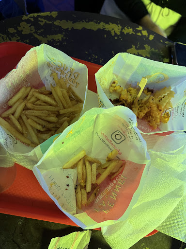 Due stelle solo per l’arredamento e la musica, altrimenti ne avrei messa una. Servizio lentissimo di’ lunedì sera. Eravamo in 4 nel ristorante con qualche ordine d’asporto. Abbiamo fatto due ordini diversi: in un ordine patatine cheddar e bacon con frappé e una birra pagato contanti e nell’altro patatine cheddar e bacon e patatine normali. Innanzitutto credo andasse cambiato l’olio perché il sapore era terribile e hanno fatto venire a tutti un acidità pazzesca. In secondo luogo il cheddar aveva un sapore decisamente strano. Per concludere con le patatine, mi sembra una grande presa per il cu** la polverina di bacon bruciata spacciata per bacon. Passiamo ora al servizio. Dopo 15 minuti arriva una prima porzione di patatine. Dopo 20 minuti ne arriva una seconda accompagnata dalla notizia che avevano finito il frappé. 20 minuti per realizzare che gli manca il prodotto forse più richiesto all’interno del loro locale. Spiazzati dalla cosa ci mettiamo un attimo per decidere con cosa sostituire il prodotto del valore di 5€. Da precisare che la ragazza non si è minimamente preoccupata di aiutarci a scegliere un prodotto di eguale prezzo, ci ho dovuto pensare io. Scelgo quindi un hamburger da 4,80€. Presi dalla chiacchiera non ci rendiamo conto che mancava l’ultima porzione di patatine, cosa che facciamo notare quando il ragazzo si presenta con l’hamburger. APRITI CIELO. Aperte indagini sulla provenienza dei due scontrini uguali del valore di 8,60€ (il pos ha rilasciato anche quello per il cliente), con tanto di transazione sul telefono dello stesso valore, si è aperta una polemica infinita su una porzione di patatine. Il personale per niente professionale, non si sono mai scusati per il loro errore. Ci hanno fatti sentire dei ladri. Inutile dire che le patatine non le abbiamo finite e nemmeno abbiamo detto nulla sulla qualità vista la situazione. Quelle che vedete quasi finite sono le prime arrivate che ci siamo divisi, per questo sono poche. L’hamburger ok, non uno dei migliori smashed che abbia mangiato. Magari durante il week end mettono i cuochi bravi e tirano su i prodotti freschi, chissà. Mi dispiace perché conosco il posto da anni e nella zona è l’unico carino. Sicuramente non ci torneremo...