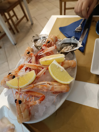 Cibo: molto buono, ottimo il pesce, porzioni abbondanti per il prezzo che si paga (a differenza di chi si lamenta delle porzioni). Ho provato: il carpaccio di spigola (buono), le alici (buone), ostriche (buone) e scampi (dolci, TOP). Ottimo il risotto di scampi (non mi ha convinto la scelta del riso al 100%, ma in ogni caso mi è piaciuto moltissimo). Assaggiato il primo del giorno (gnocchi con cozze e pecorino), ricco di cozze e amalgamato benissimo il tutto. Moscardini TOP! Croccanti, piccoli, saporiti. Provata pure la frittura di calamari (non mi ha fatto impazzire, ma ero anche con la pancia piena per cui è facile non me la sia goduta anche per questo).