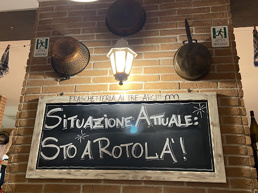 Read moreSiamo stati presso la Fraschetteria ai tre Archi venerdì 1 Novembre 2024. Devo dire che avevo visto qualche video su Tik Tok dove veniva recensito negativamente, ma posso dire con tanta onesta che assolutamente non è così… anzi… Antipasti davvero abbondanti e di qualità , che hanno soddisfatto tutta la tavolata di 14 persone. ( bambini compresi) Ma comunque i camerieri sono passati più volte a chiedere se volessimo riassortire di tutto o anche solo una sola pietanza in particolare. abbiamo poi proseguito con 3 primi piatti della cucina tipica romana, che ci sono stati serviti direttamente nelle maxi padelle che tenevano perfettamente la temperatura. Partiamo dalla Amatriciana, che era qualcosa di sublime... pasta fresca che ha tenuto la cottura e che si amalgamava perfettamente con il condimento. Abbiamo poi proseguito con la Carbonara, dove praticamente abbiamo fatto pure la scarpetta col pane e abbiamo assaggiato anche la cacio e pepe che ci ha stroncati ! Era molto peposa, col vino scendeva na bellezza! 😁 Nel menu' era prevista anche la carne con contorni, ma è stato impossibile vista l'abbondanza di quanto avevamo gia' mangiato. Il locale si presenta nella sua originalità, con l'allestimento di corde con appesa della biancheria di taglie extra large, davvero molto simpatiche e questo tema si ripete nella presentazione dell'antipasto servito su uno stendino con le mollette. Il personale e' stato gentilissimo, sorridente e disponibile. (Una commensale aveva delle allergie alimentari, abbiamo ovviato tranquillamente con altro) Il proprietario sempre presente che chiedeva ai commensali se tutto procedesse bene. Molto simpatico e con la battuta pronta, infatti mentre stavo impiattando agli amici del mio tavolo, c’e’ stato un simpatico scambio di battute inerente al mio modo di fare, che ha fatto sorridere anche gli altri tavoli… ma e’ stato anche tanto gentile. Davvero, io con i miei amici siamo della provincia di Salerno, mi sono voluta affidare alle mie sensazioni piuttosto che ai video su tik tok e posso dire non rispecchiano assolutamente la realtà. Ho seguito il mio istinto che non mi ha tradita e siamo rimasti tutti molto soddisfatti. Tutto molto caloroso e familiare, ci siamo sentiti a nostro agio e soprattutto PIENI 😂 Questa è stata la nostra esperienza e spero possa essere di aiuto nella scelta ad...