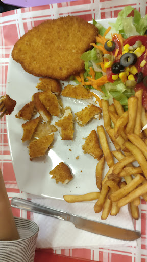 Kids had chicken filet - it was overdone and bland. Fries were somewhat burnt and the potatoes tasted sweet. Chicken cheese burger was awful. Beef burger was worse - the patties were raw from the center.