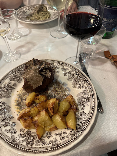 Read moreThis was hands down the best restaurant we went to while in Rome. That’s saying a lot given that this visit included two other Michelin star restaurants. The personal touch and warm reception immediately made us feel welcome and like VIPs. From the golden age music to the elegant dinner plates and silverware to the twinkling lights and specials on the chalkboard, this place has charm and grace. Even more remarkable is the food. The in-house made foie gras is incredible and was paired with an incredible onion jam. I had it with a muscato. The filet with truffles was perfectly seared and generously topped with slices of very tasty black truffle. The fettuccine with truffles was also ridiculously delicious with just the right wine pairings. If that wasn’t enough, the service was as kind and friendly and respectfully but not overly attentive as ever found in Rome. You must try this restaurant because if you do, you’ll just want to go back and have them feed...