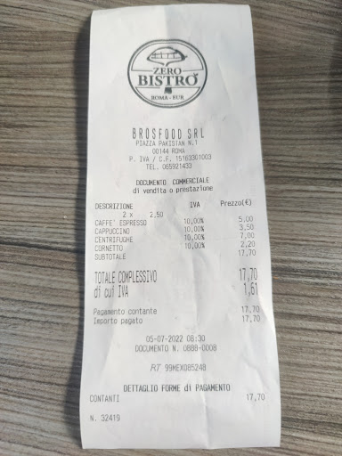 Read morePremetto che ho visitato questo bistrot solo per un caffè, non ho consumato al ristorante. La prima cosa da evidenziare di questo locale è il particolare edicio (riserva idrica per il quartiere dell'Eur, poi trasformata in ristorante), diventa un luogo iconico per i romani. È stato costruito negli anni 60, ma è negli anni successivi che diventa un punto d'incontro e uno dei locali di ritrovo più esclusivi di Roma. Fu anche oggetto di un attentato esplosivo. Dispone di un ristorante con vista panoramica esclusiva sull'Eur. Queste caratteristiche fanno si, che i prezzi adottati siano differenti rispetto a una location con meno "storia". Per tutte queste peculiarità devo mettere una stella in più.Come premesso non posso dare valutazioni sulla qualità dei piatti del ristorante, però per quanto riguarda il personale, mi è sembrato cortese e gentile. Se siete in zona, vale la pena di fermarsi almeno per un caffè ed ammirare questa particolare di trasformazione...