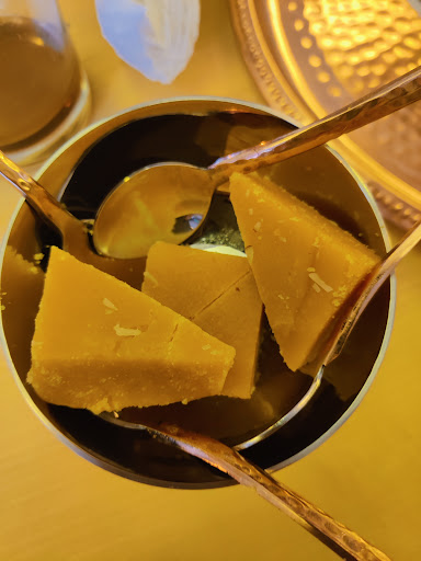 Read moreIl ristorante è molto buono e l’atmosfera molto accogliente e curata. Il cibo è ottimo! Abbiamo mangiato in modo molto soddisfacente. Unica nota: ci siamo sentiti spinti a continuare ad ordinare, e abbiamo infatti ordinato più di quanto potessimo mangiare, ed è un peccato perché volevamo provare i dolci. Durante tutta la cena ci è stato chiesto probabilmente 8-9 volte se volessimo continuare ad ordinare, anche quando non eravamo riusciti a finire il cibo che avevamo già sul tavolo, e ci è stato portato il menu dei dolci nonostante avessimo esplicitamente detto che volevamo una pausa e anche quando abbiamo rimandato indietro il menu siamo stati nuovamente chiesti se volessimo ordinare altro. Poi oggi leggendo le recensioni vedo che altre persone hanno ricevuto dei piccoli dolci di arrivederci, e noi no :( Questo sicuramente da cambiare. Detto ciò, non lascio meno di 5 stelle perché l’atmosfera e il cibo erano veramente, veramente buoni. Ed il prezzo era molto onesto. Il cibo era autentico e l’esperienza pure, dalle salsine all’inizio alle decorazioni in rame. Non si paga il coperto e le Bibite sono a prezzo più che corretto. Ci si può concentrare (con gioia) sul cibo. Direi che 3 piatti e due contorni (pane naan o riso) sono più che sufficienti per 2 persone, e dovrebbero lasciare anche abbastanza spazio per condividere un dessert. E in tutto avrete speso dai 40 ai 50, con bibite incluse. Peccato perché sicuramente uno dei miei ristoranti preferiti (cibo e atmosfera), ma esserci sentiti spinti ad ordinare sempre di più è stato un po’ scortese, e non sono sicuro...