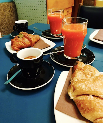 We walked in to a fairly empty café, I assume everyone was at work already which was nice for us. We had plenty of seating to choose from and could plan our day in peace and quiet. The first visit, we had croissants and cappuccinos. The croissants were SO good. They were whole wheat with fruit jam inside then lightly sprinkled with coarse sugar. AMAZING. Everything cost us under €5! Well worth it.