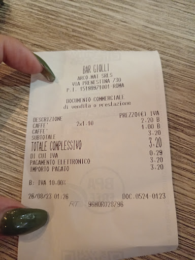 Bar, tabaccheria, tavola calda e tant’altro ancora, sulla Prenestina all’altezza dell’incrocio Tor Sapienza/Tor Tre Teste, dotato di ampio e comodo parcheggio. Ha prodotti freschissimi confezionati con materie prime di alta qualità. La pasticceria viene prodotta nell’annesso laboratorio, quindi, i cornetti, le pasterelle i gelati ecc… sono tutti freschissimi e fragranti. Stesso discorso vale anche per la tavola calda che, di fatto, è un ristorantino travestito da tavola calda. In ultimo, ma non per ultimo, la squisita cortesia e professionalità del gestore - il Sig. Paolo - che si adopera instancabilmente a soddisfare le esigenze degli avventore per consentir loro di poter godere di momenti di spensieratezza e relax con i propri amici. E questa cosa, da cliente storico, la posso affermare con ASSOLUTA...