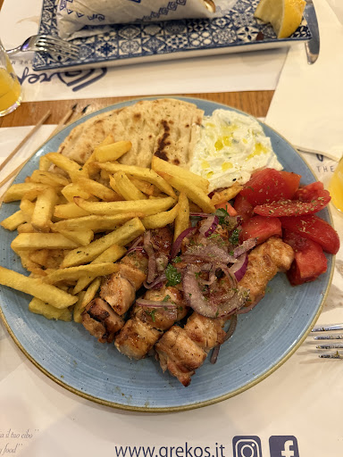 And the food- all i can say is awesome! We have been to Athens and Santorini and have tried authentic greek foods in a greek restaurant in Greece. We had really enjoyed warm Greek hospitality during our time in Greece and the food was great too. However, food at Grekos is at a whole another level! Its not even an exaggeration! Chicken skewers, pork skewers, beef patties, pita bread, greek yogurt with rose petals, you name it. Everything is good. Even their french fries are on a different level. I was so dumbfounded with the quality of food that I forgot to pay after eating initially- My apologies to the establishment, again! They were kind enough to understand the state of food coma I was in and let me pay back without any issues. Now that I have tried the food at Grekos, this is my frame of reference to compare all the Greek food moving forward. Thank you to the restaurant staff and management for this...
