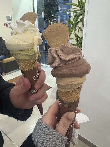 You can choose a cone with chocolate or pistachio filling inside and fluffy cream on top, or go for a cup - also topped with their delicious cream.