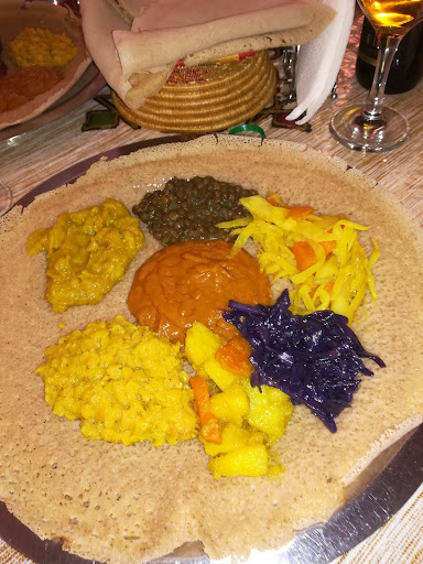 L' accoglienza della proprietaria Etiope, sarà garbata e familiare, l'arredo caldo e informale. Il menù prevede 3 antipasti, e una manciata di piatti, con tutti ingredienti simili. Su tutto impera, il berberé una miscela di spezie, che comprende pepe bianco, zenzero, chiodo di garofano, peperoncino, coriandolo ed altri, presente in quasi tutti i piatti proposti.
