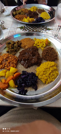 Read moreAbbiamo pranzato in questo ristorante etiope/eritreo in un giorno tranquillo con pochi altri commensali e quindi la proprietaria ha potuto dedicarci più tempo per spiegarci le portate ed il modo in cui cucinano. A parte la gentilezza del personale che è uno dei punti forti che sempre mi piace sottolineare, il cibo è veramente buono. Abbiamo provato i falafel e i sanbusa entrambi ottimi. Come portata principale ovviamente il loro pane morbido con sopra da una parte una carne speziata e piccante ottima e nell'altra portata varie verdure sempre molto saporite. Anche il loro dolce (di tradizione egiziana) è saporito nonostante una consistenza farinosa che risulta particolare al palato ma piacevole. Si mangia con le mani questo è ovvio in un ristorante africano e come sottolineato da alcuni ci vuole qualche minuto in più di attesa ma ne...