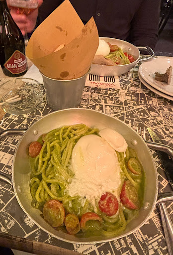 The pasta was fine (carbonara and l'arrabiata) but we felt pressured to finish our dishes and our bottle of wine. While we were drinking our wine, we were asked if we wanted a dessert or coffee for four times. We were actually planning on having a desert but we felt so rushed and we ate so fast that we required some more time. Then a waiter stated that they needed our table (even though there was more than enough room), which is a completely rude comment to any guest. It seemed like they were more patient with Italian guests than with any other guests.