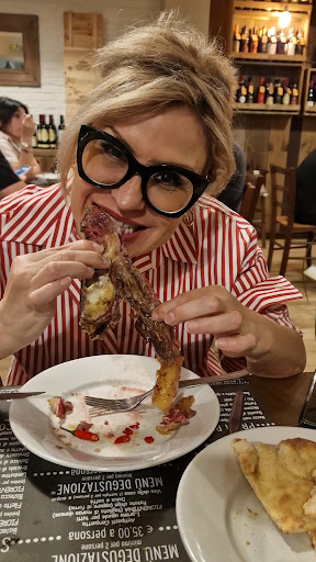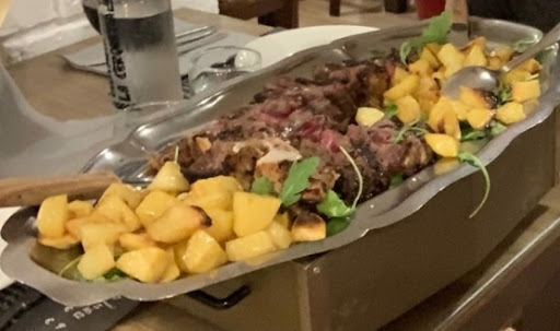 Read moreEsperienza eccezionale! Abbiamo preso il menù a 35€ ciascuno e onestamente non pensavamo di riuscire a finire tutto. Ad ogni modo gli antipasti erano tutti squisiti, specialmente la mortadella e il prosciutto crudo, per non parlare della focaccia (crea assuefazione e rischi di mangiarla tutta prima di mangiare tutto il resto). Per quanto riguarda il primo piatto abbiamo preso i bucatini all'amatriciana, perfetti anche quelli come sugo, cottura e quantità. Poi è arrivato il piatto "forte", la tagliata di fiorentina con le patate chips (si possono avere anche quelle al forno a seconda dei gusti). Anche in questo caso pensavamo di non farcela e invece è rimasto solo l'osso. La carne viene servita su un piatto appoggiato sui carboni ardenti, pertanto a proprio piacimento si può continuare la cottura o meno e, soprattutto, la carne non si raffredda mai, ottima astuzia davvero, non tutti la usano questa accortezza e a volte è capitato di arrivare alla fine del pranzo mangiando la carne fredda, ma qui così non è stato e abbiamo finito anche quella. Qualità peraltro davvero eccellente. Anche il vino della casa è stato apprezzato, così come il tartufo di pizzo, tocco finale, e il personale del ristorante, davvero molto cortese e professionale nonché simpatico. Davvero molto molto consigliato, andateci e non rimarrete delusi, anzi...ci tornerete, come abbiamo fatto noi del resto! Ah, dimenticavo, possibilità di parcheggiare la macchina proprio sotto il locale, molto comodo! Alla prossima e ancora...