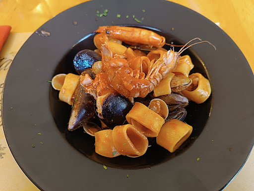Read moreUna buona scoperta, piccolo ristorante di quartiere, con un buon rapporto qualità prezzo. Tra le scelte degli antipasti, il locale propone un "misto" che contiene un po' di tutto a 15 euro a persona, la porzione e abbondante. Incuriositi dal baccalà fritto, non presente nell'antipasto misto, abbiamo optato per un ottimo piatto di cozze servite con scaglie di pane croccante, una buona insalata di mare ed un ottimo baccalà fritto, cotto molto bene e giusto. Sorseggiando un vermentino della casa, abbiamo preso un buon primo, la calamarata...buona e ben condita, assieme al primo abbiamo preso un polpo alla griglia servito con pomodori a fette, buono ma non entusiasmante. Alla fine siamo usciti contenti, con 60 euro abbiamo mangiato bene e, cosa da non sottovalutare, la serata e stata resa piacevole dalla gentilezza e cortesia del personale in sala e soprattutto i piatti sono usciti con i giusti tempi, nonostante il locale...