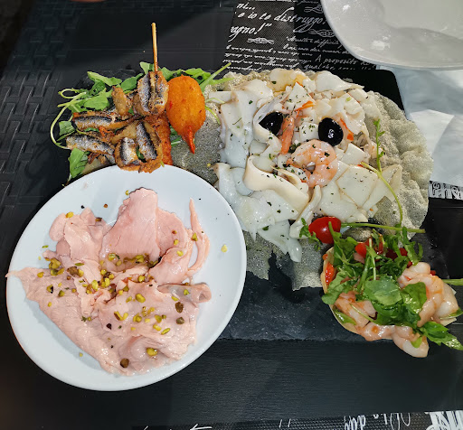 Read moreUna piacevole scoperta! Il cibo è stato ottimo, il servizio abbastanza veloce e l'atmosfera piacevole. I piatti sono ben presentati e soprattutto le porzioni sono più che generose. In due abbiamo preso uno sfizioso antipasto di mare, una deliziosa calamarata ai frutti di mare, una gustosa grigliata mista di pesce accompagnata da patate al forno e due golosi dessert alla cifra di 80€ (incluso un litro e mezzo di vino bianco della casa, anche questo molto buono). Siamo andati via sazi e soddisfatti....