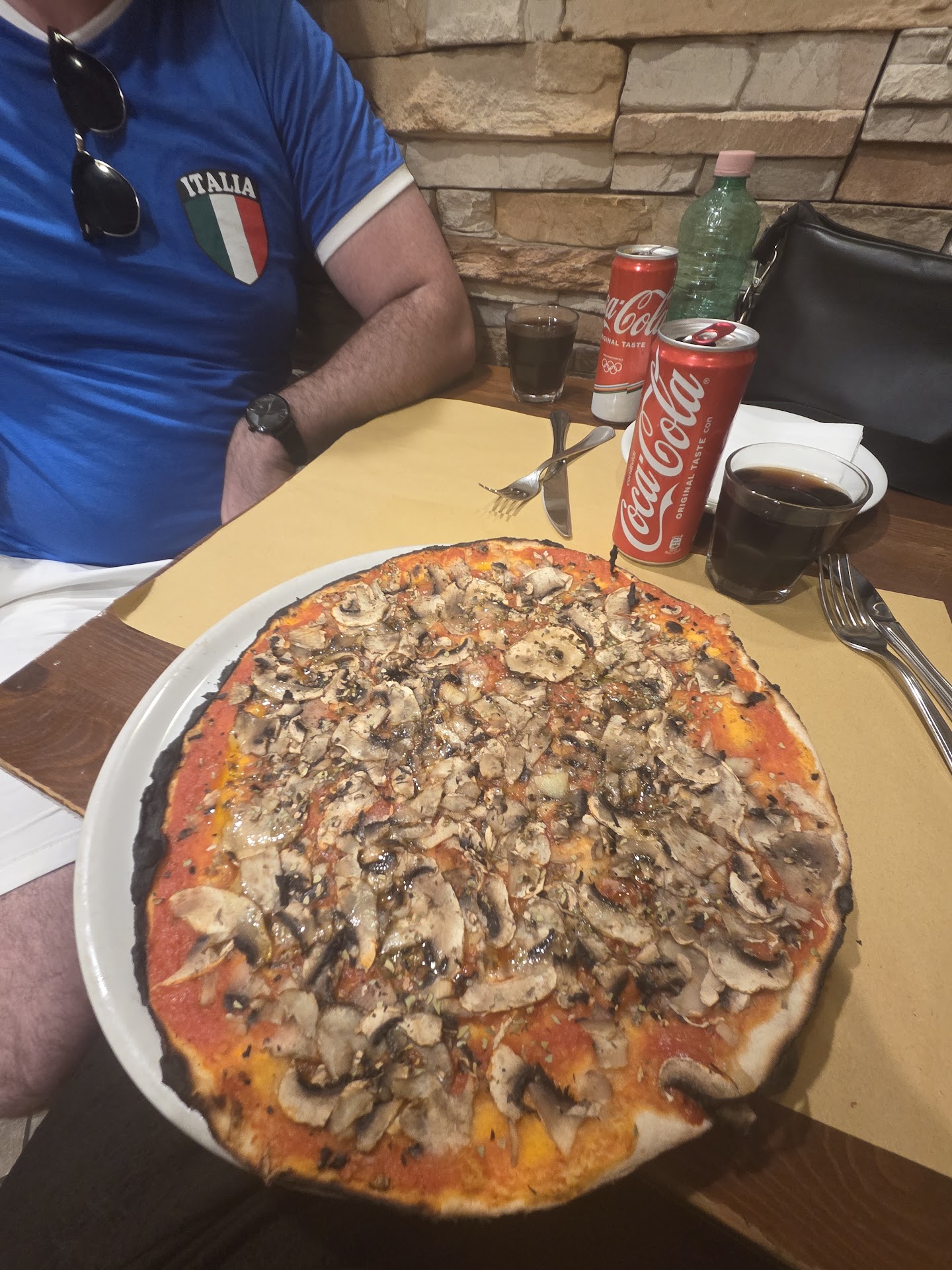We arrived to Rome on a Sunday after a long drive from Trieste. We were very hungry, and as this restaurant was open early (18:30) compared to others, we thought we would give it a try. It seemed to have overwhelming good reviews. We came in right at 18:30 when they opened and were given the table in the back-right corner of the restaurant by the window. That spot smelled a little like urine. My wife and mother were debating whether or not to stay and eat there, but as most other places didn't open until 19:30, we decided to stay. My wife and I ordered a pizza each. My mother ordered the grilled chicken steak. The pizzas were pretty good, but my mother's chicken was seared and completely raw (full on red) in the middle. She ate the portions on the outside working her way inward before realizing how raw it was. I told the young waiter the chicken was raw and he looked and saw that it was, seemingly shocked. I complimented them on the pizza and asked for the check without the chicken. He seemed confused and then took the chicken away. They were getting quite busy and he never came back. In the end, I went to the cashier and just paid for the check including the 12 EUR raw chicken. I've lived in Europe for 7 years and have visited Italy almost every year since moving here. I don't remember ever having an experience like this at a restaurant in Italy (or Germany, Czech Republic, Austria, etc). It's a super cheap place food wise, which wasn't what I really was looking for, but raw chicken is unacceptable. Hopefully this was a one-time mistake. I'll likely not visit again...